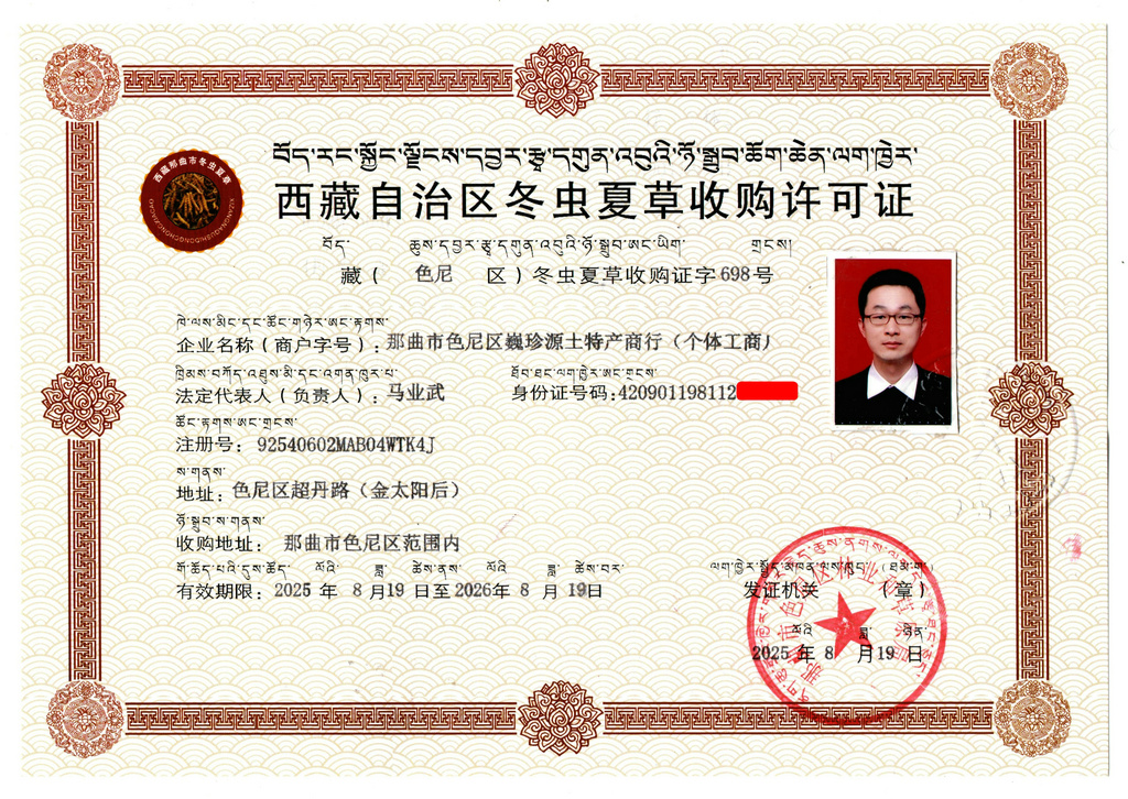 那曲市色尼區(qū)巍珍源土特產(chǎn)商行,巍珍源在西藏那曲設(shè)立新鮮冬蟲(chóng)夏草貨源收購(gòu)基地,成立了經(jīng)營(yíng)實(shí)體名叫:那曲市色尼區(qū)巍珍源土特產(chǎn)商行,直接向采挖那曲冬蟲(chóng)夏草的牧民收購(gòu)新鮮蟲(chóng)草和干蟲(chóng)草